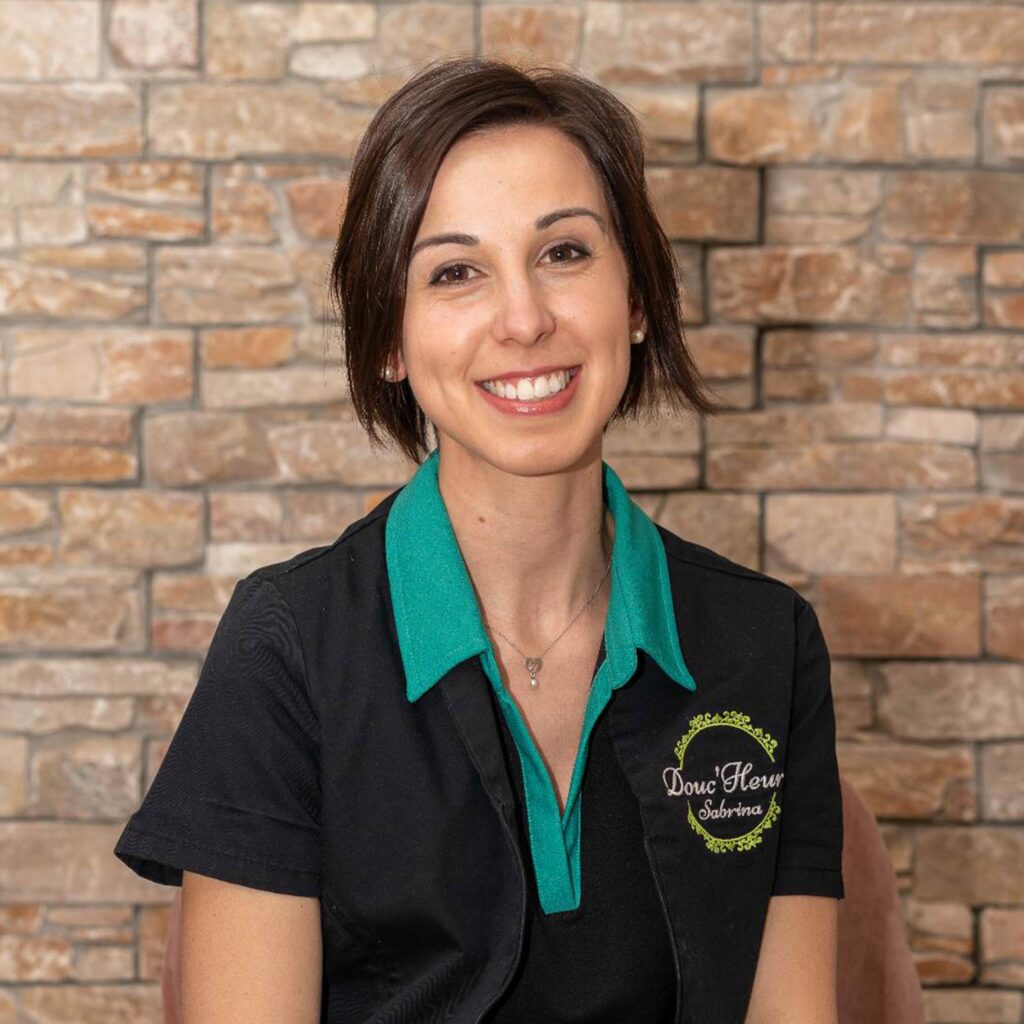 Je me présente Sabrina, diplômée du CAP esthétique-cosmétique depuis 2010 et du Brevet Professionnel esthétique cosmétique depuis 2012 et j’ai intégré l’équipe Douc’Heure en octobre 2021. J’ai acquis mon expérience professionnelle au sein de plusieurs instituts de beauté qui m’ont permis de me développer dans un grand nombre de formations, notamment dans les modelages du corps, du visage ainsi que l’onglerie.